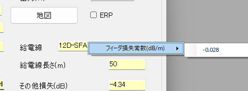 a-2-3.フィーダ常数の塘路機機能の追加 現在の周波数の1m当たりの減衰量を登録、その後周波数を変更しても追従します。