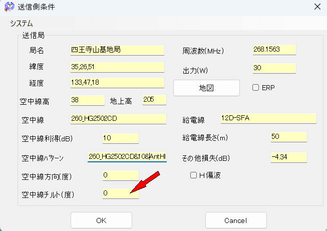 a-1-4.空中線チルト(度) 近接干渉を可能とする為、垂直角度損機能を追加したので、空中線取り付けチルト各の設定機能を追加