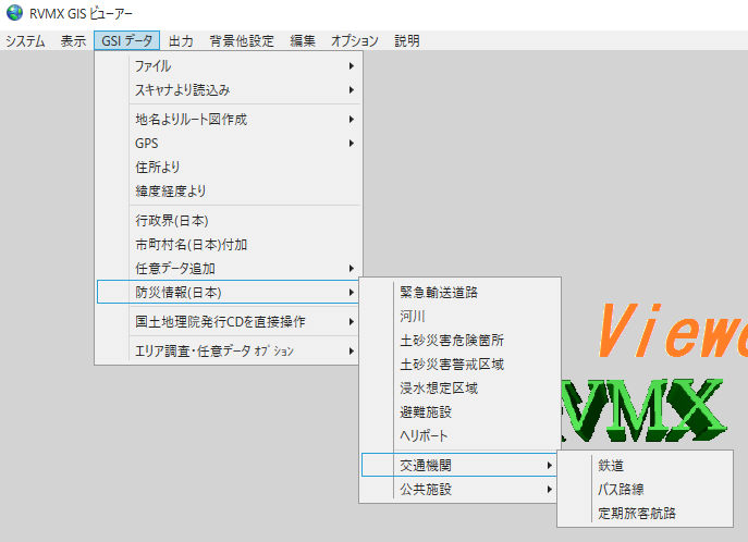 RVMX GIS Viewerで国土交通省が提供しているバス路線データを作図する機能です。