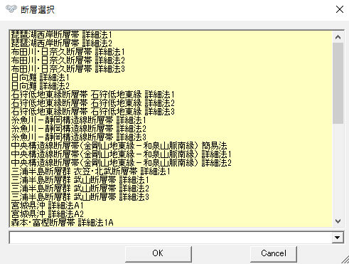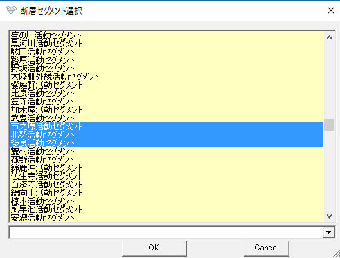 防災サービスエリア地図等に指定した活断層データ(深層断層・活動セグメント)を作図する事が出来ます。