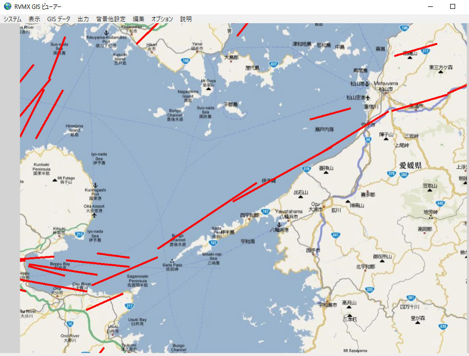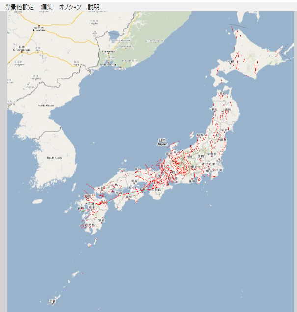 事前に地図が無い時は、対象データが収まる範囲の地図が自動的に作成されます。