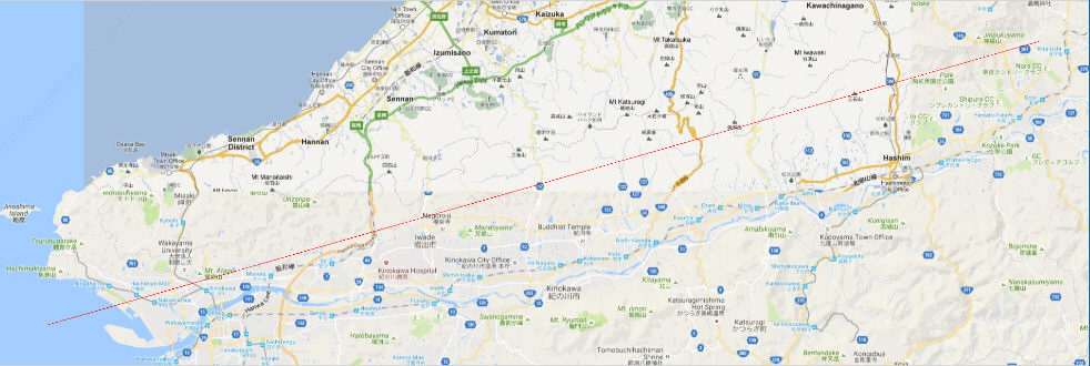 中央構造線の大分〜愛媛間の例