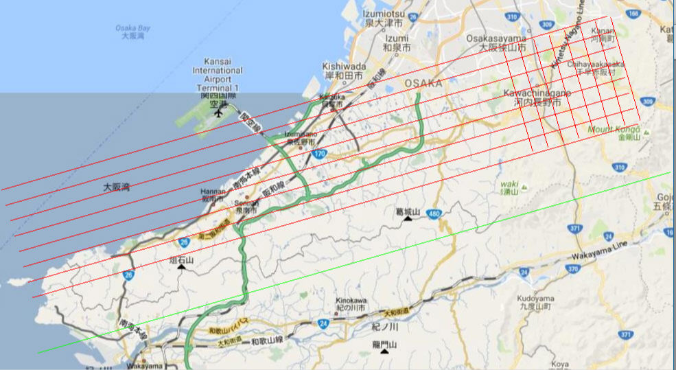 -1.中央構造線断層帯(金剛山地東縁−和泉山脈南縁 詳細法1の表層断層を赤色で作図した例。