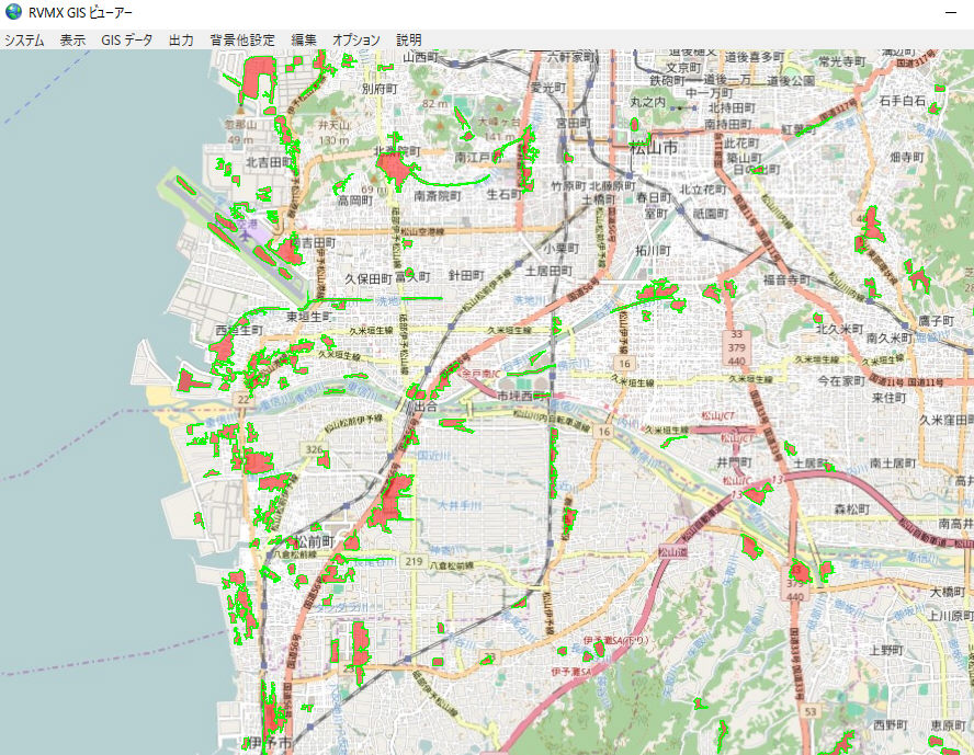 松山空港周辺で作図した例。