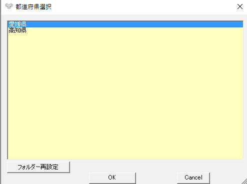 フォルダー再設定ボタン データ保存フォルダーを指定し直し