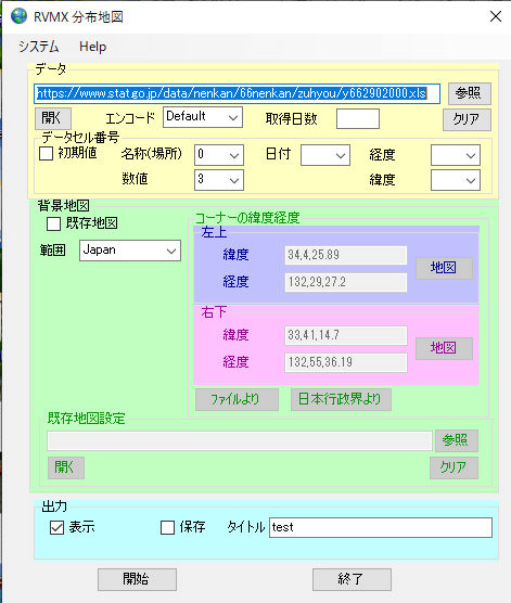 今回そのクラスを使って分布地図を作成する汎用ソフトを作成しました。この説明はこの汎用ソフトの説明となります。