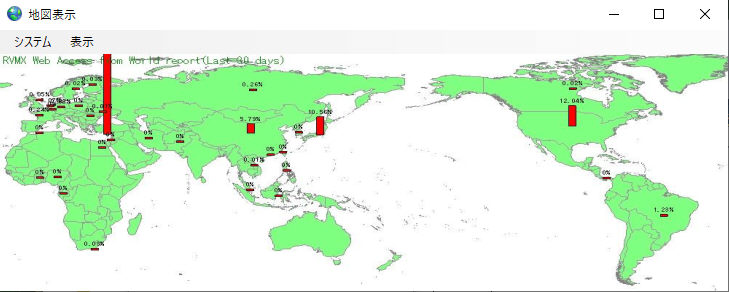 世界中よりのRVMXへのアクセスを毎日自動的に作成している分布地図