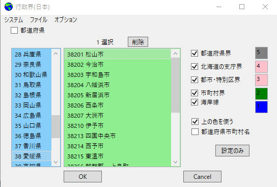 c-2.都道府県のみ選択 都道府県単位で作成します。(チェックを入れると塗りつぶしの指定が出来ます)
