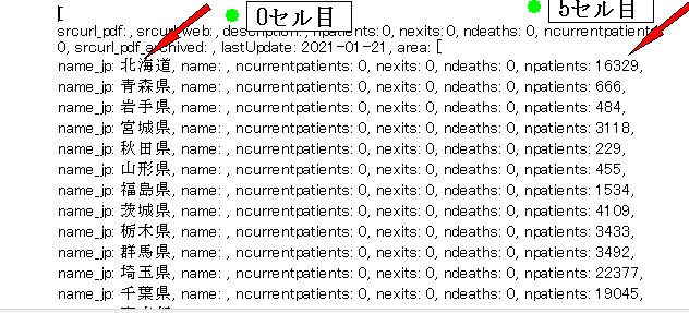 Webよりコロナ感染データをJsonフォーマットを開いた例