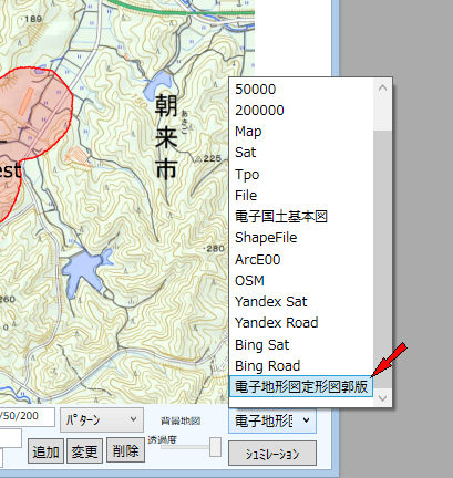 国土地理院発行の電子地形図定形図郭版地図への対応の操作説明です。