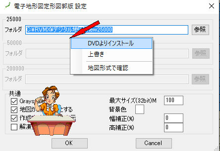 国土地理院発行のDVD版25000電子地形図定形図郭版のインストール援助機能