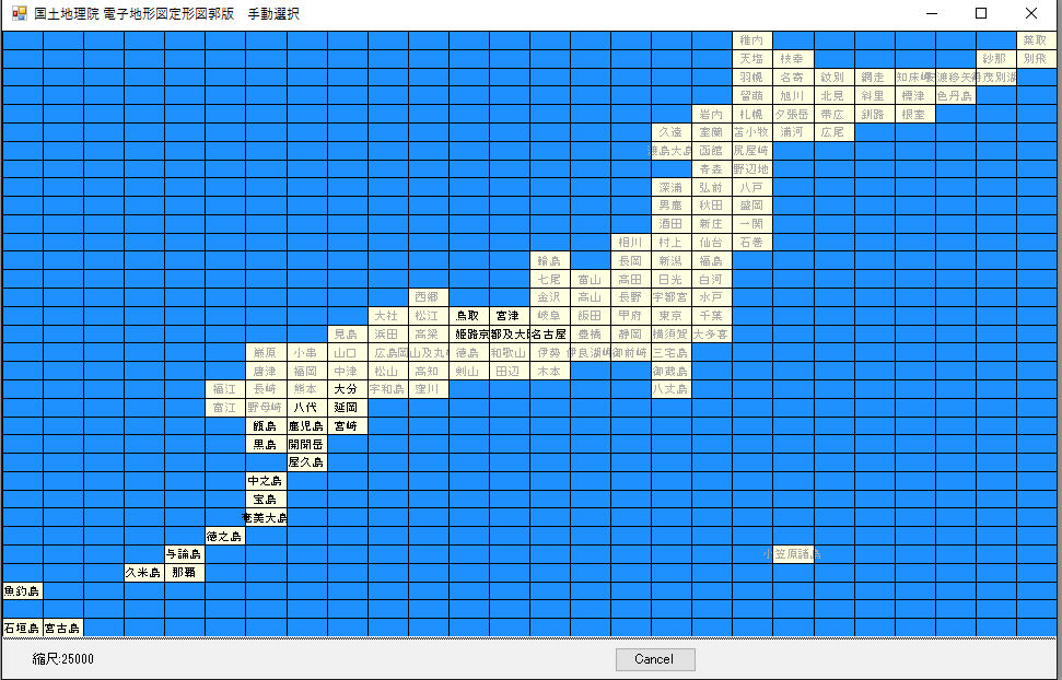 国土地理院発行の電子地形図定形図郭版機能は新しく発行された地図です。段々利用が増えて扱うデータ数が増加してきました、それらの管理用Toolです。