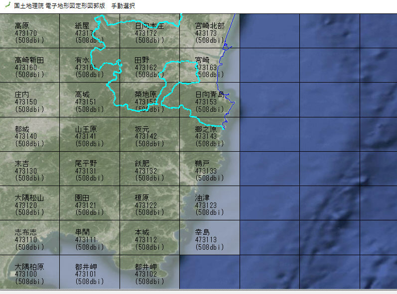 国土地理院発行の25000電子地形図定形図郭版の手動操作機能