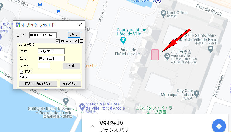 -2.Paris->緯度経度->Open Location Code->Pluscodes地図で表示例