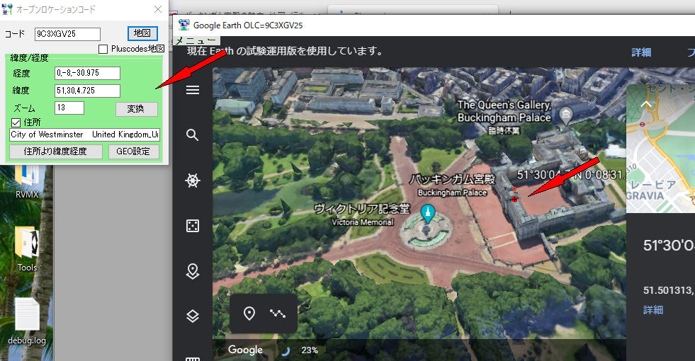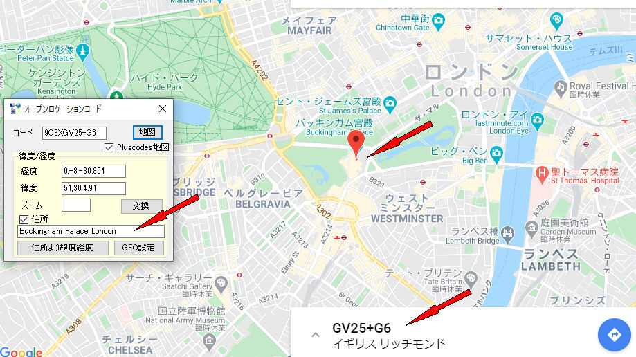 -3.Buckingham Place London->緯度経度->Open Location Code->Pluscodes地図で表示例