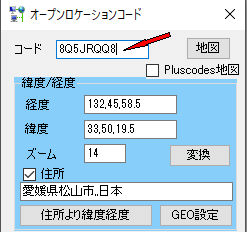 a.コード Open Location Codeの入力・参照テキストボツクス