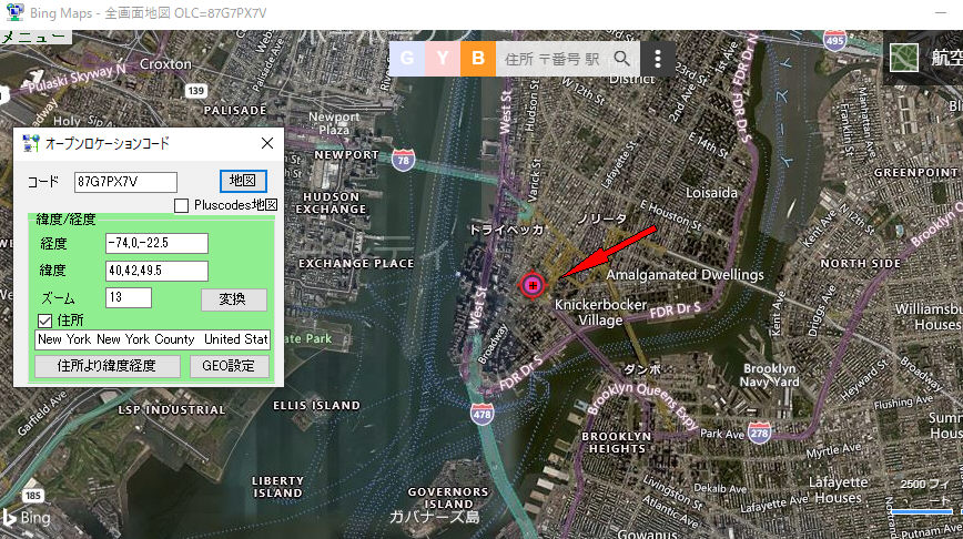 -4.New York->緯度経度->Open Location Code->Edge(Chromium)による地図(BingMap)で表示例
