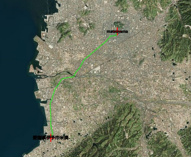 -1.車で松山市より伊予市へ移動のルート検索例()