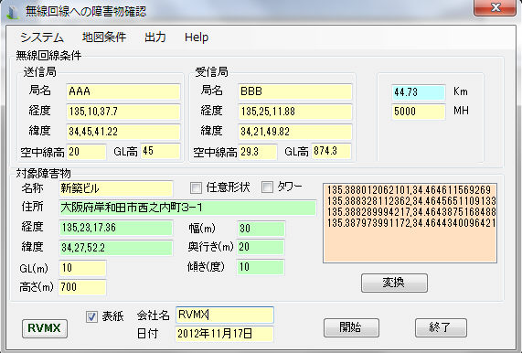 b-13.変換ボタン 任意形状ONの時、障害物緯度経度・幅・奥行き・傾きより構造物のコナーの緯度経度一覧へ変換