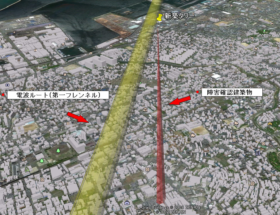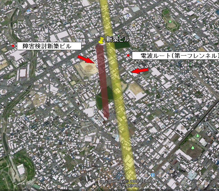 法律により、高層建築物等(地上31mを超える建築物等)を計画する時は、重要回線の障害と成らないか確認する必要が有ります。