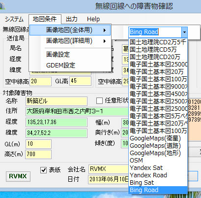 新規の高層建築物等(地上31mを超える建築物等)や新規の回線検討時用、電波障害(固定回線)確認Tool(参考機能)です。
