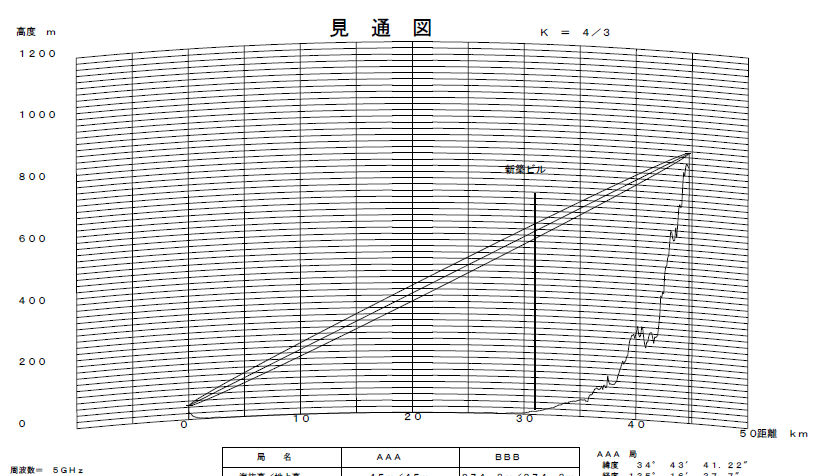 イ-4.電波ルート標高 見通図に障害物地点の電波ルート標高を表示(2018年版は試用、2019年版より正規)