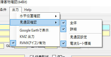 ウ.Google Earthで表示 電波障害確認をGoogle Earth上に表示確認(但し、Google Earthがインストールされている必要が有ります)