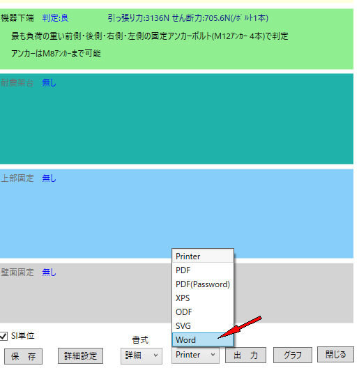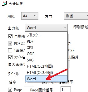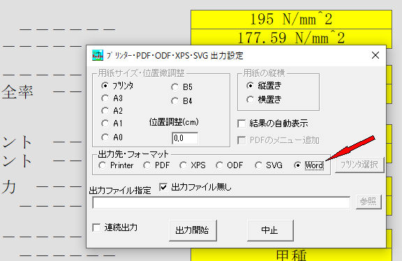Wordボタンを押して実行(Wordとの相互運用環境が無い時は、選択できなく成っています)