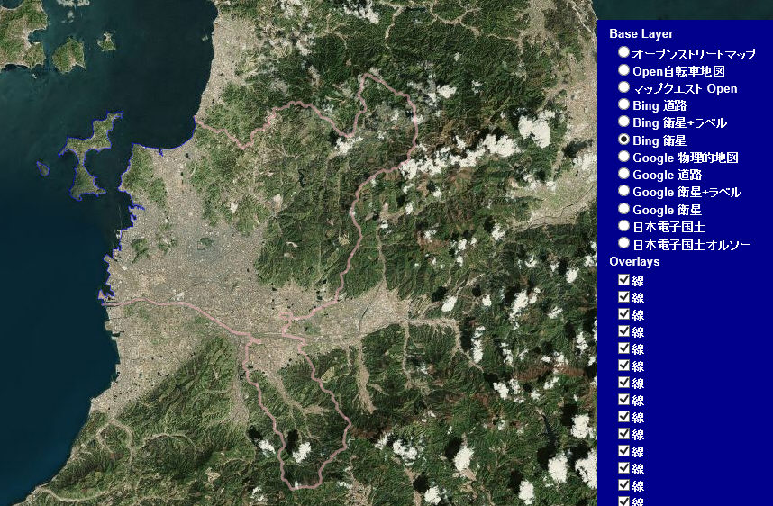 各WMSに準拠した地図サーバの仕様変更や停止などにより、該当地図が見えなくなる可能性があります