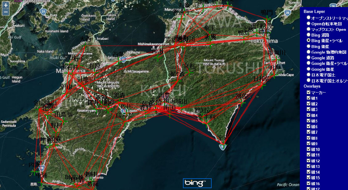 地図のソースはWMSに準拠した地図サーバから配信される地図情報を使います。(OpenStreetMap・Google Maps・Bing・国土地理院の日本電子地図他他が対応)