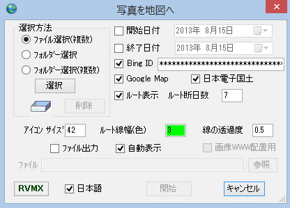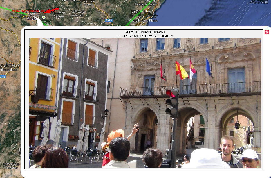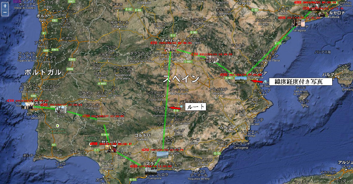 GPS付のデジカメやビデオ・スマートフォンで撮影した写真を地図上に配置します。最初の画像参照