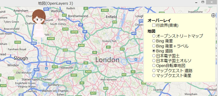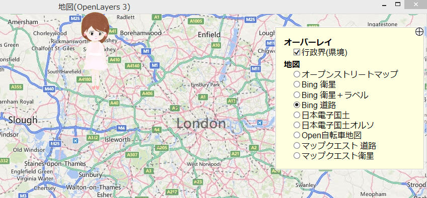 地図のソースはTiled Layersに準拠した地図サーバから配信される地図情報を使います。(OpenStreetMap・Bing・国土地理院の日本電子地図他が対応)