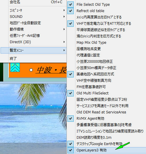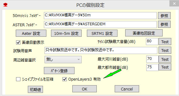 PC固有の設定でOpenLayers3 有効をチェックbr>