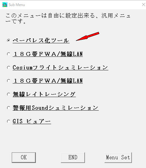 登録したい場所を選択し、Menu Setボタンを押して、候補よりペーパレス化ツールを選択
