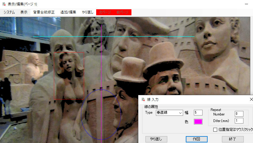 a-4-2.線編集 線などのグラフィックデータを編集可能にします。線・四角・円編集画面説明参照