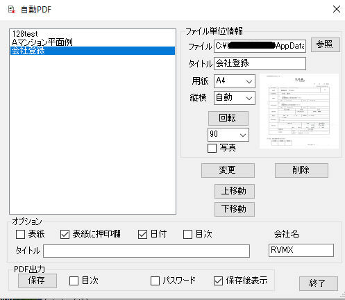 b.自動 ファイル選択のみで、自動PDF化 自動PDF説明参照