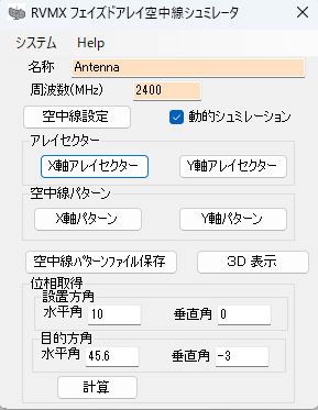 RVMX フェイズドアレイ空中線シュミレーション(α版)参考機能