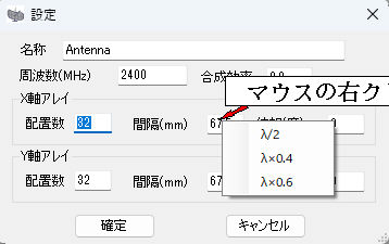 マウスの右クリックでλ(波長)/2・λ×0.4・λ×0.6が選択できます