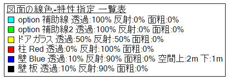 補助線などのシュミレーションに関係ない線は、反射率0%及び透過率100%として下さい。