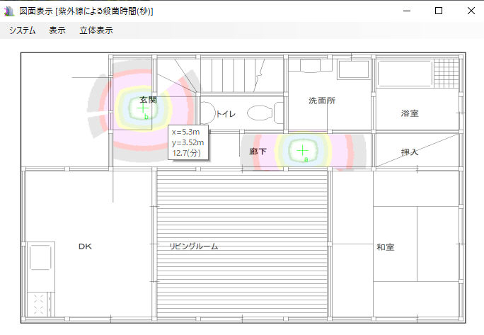 そこで、処理が似ているRVMX無線レイトレーシングの中に、この遠紫外線222nmランプを使った新型コロナ無効化シュミレーションを作成しました。