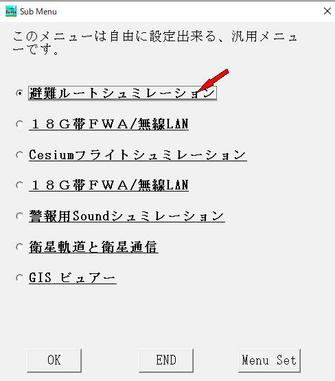避難ルート検索シュミレーションがメニューに無い時は、メニューに登録