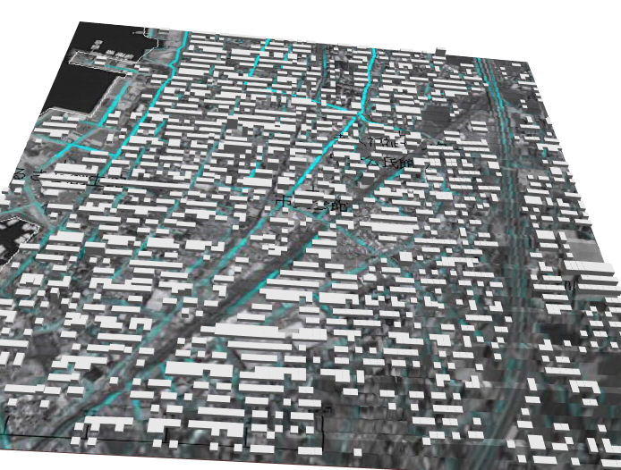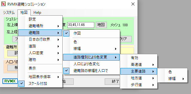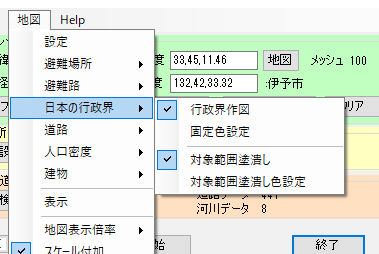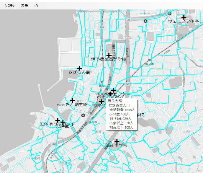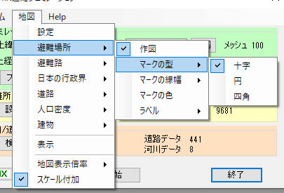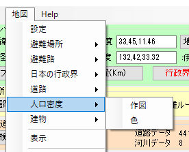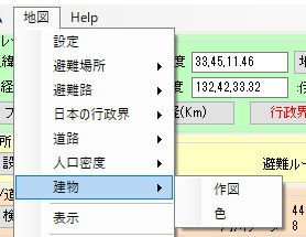 避難ルート推定の為の人口/道路/河川/家/地形データ設定