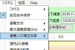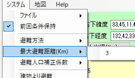 d.最大避難距離Km 余り遠くの避難所を選ばないように設定