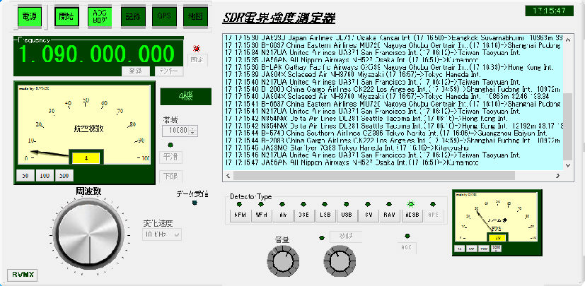 ADS-B(1.09GHz)の受信を試みましたが、高域の感度が悪いせいと思われる現象が出ています、Frameの受信回数が非常に少なく、正常にADS-Bの信号は受信できませんでした。