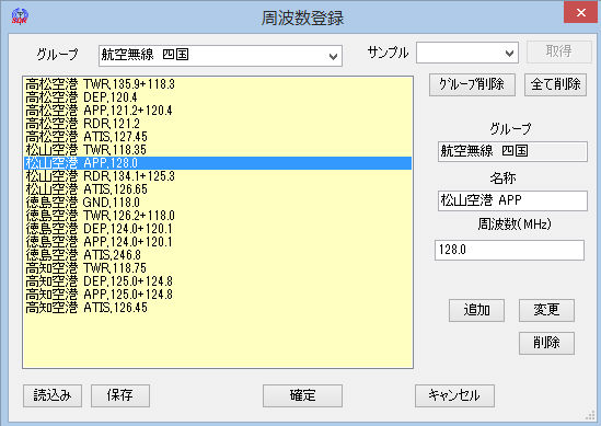 ・登録ボタン 周波数の登録や登録済み候補より選択
