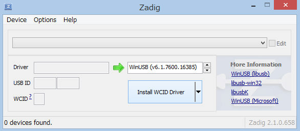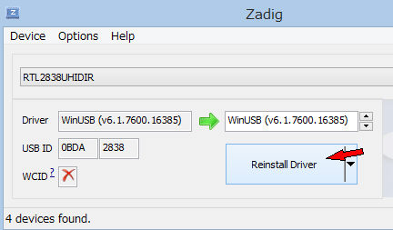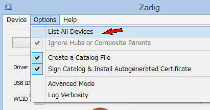 画面よりzadigを起動できない時は、ルートに有るzadig.exeを直接起動してください。*1