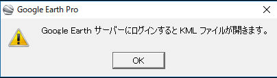 -2.時々下記のメツセージが出るときがありますが、OKボタンを押して下さい。(PCの環境によりDesktop GoogleEarthの立ち上がりが間に合わないときに出ると思われます。)