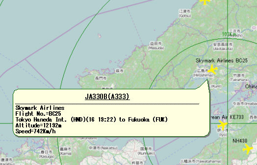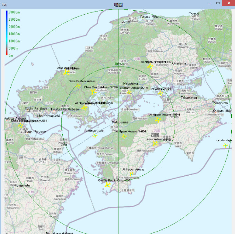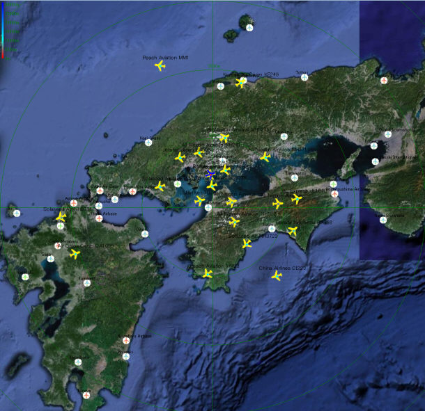 DSB受信地点登録が無い時は航空機群の中心が地図の中心となります。