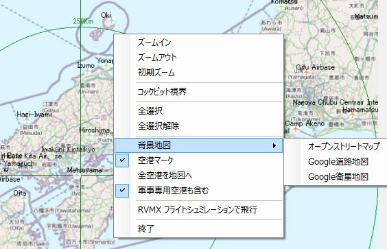 k.RVMXフライトシュミレーションで飛行 RVMXフライトシュミレーションが動作する環境で有れば、フライトシュミレーションの飛行機も地図表示します(テスト用)