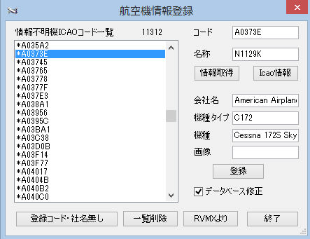 ア.不明航空機データベース追加・修正 不明航空機データベース追加・修正を行います。 下記3.不明航空機データベース追加・修正を参照